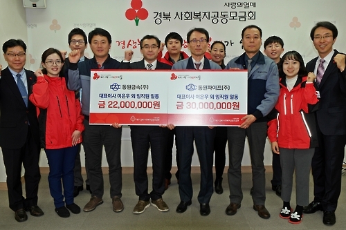 동원금속·동원파이트 이웃돕기 성금 5천200만원 기탁