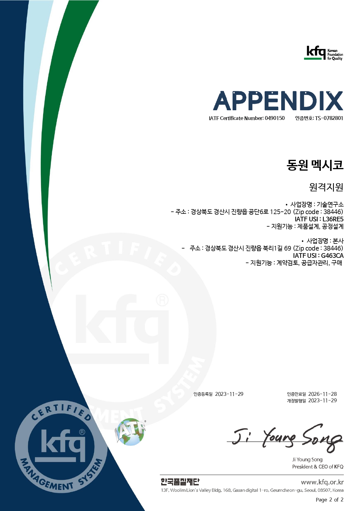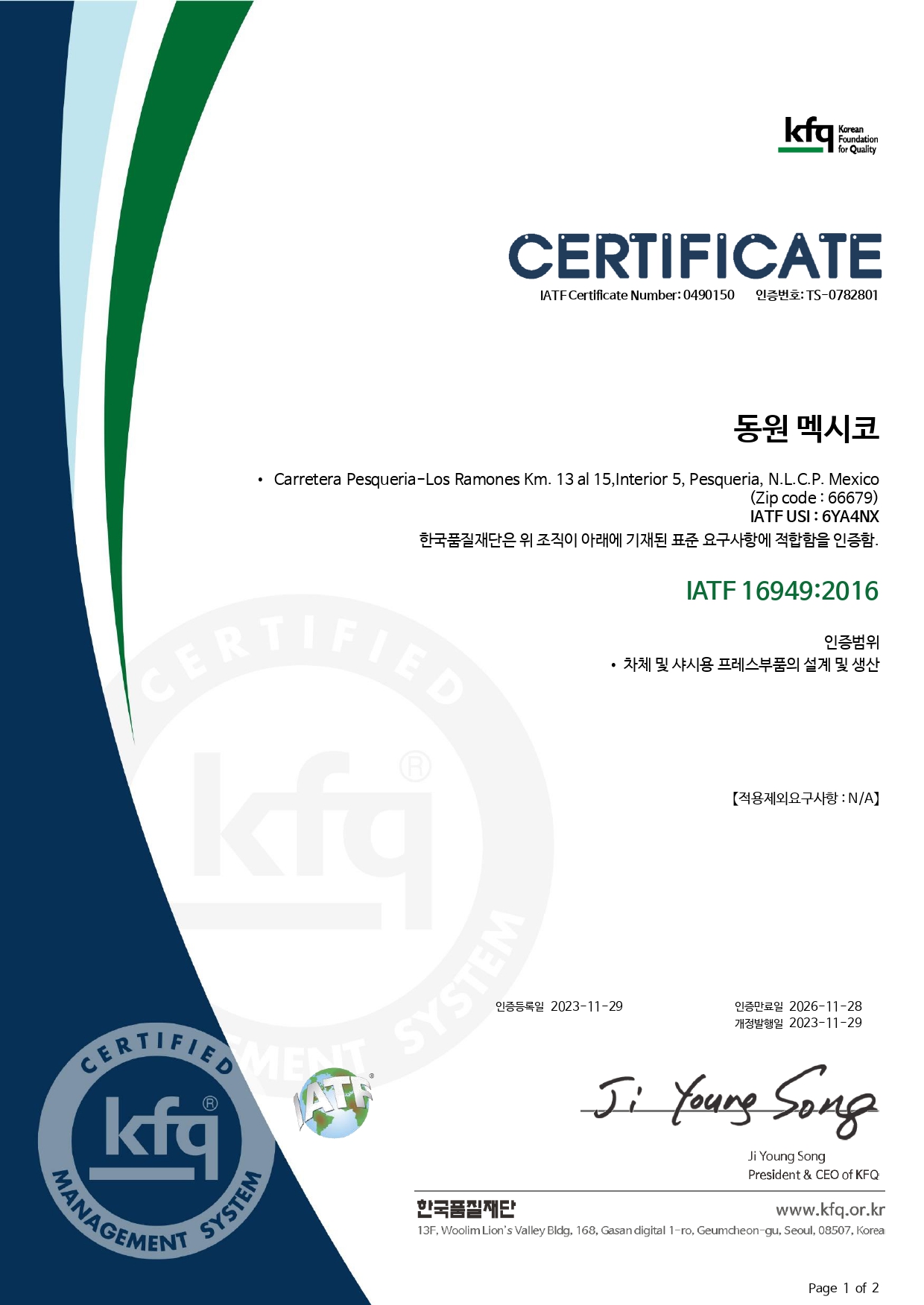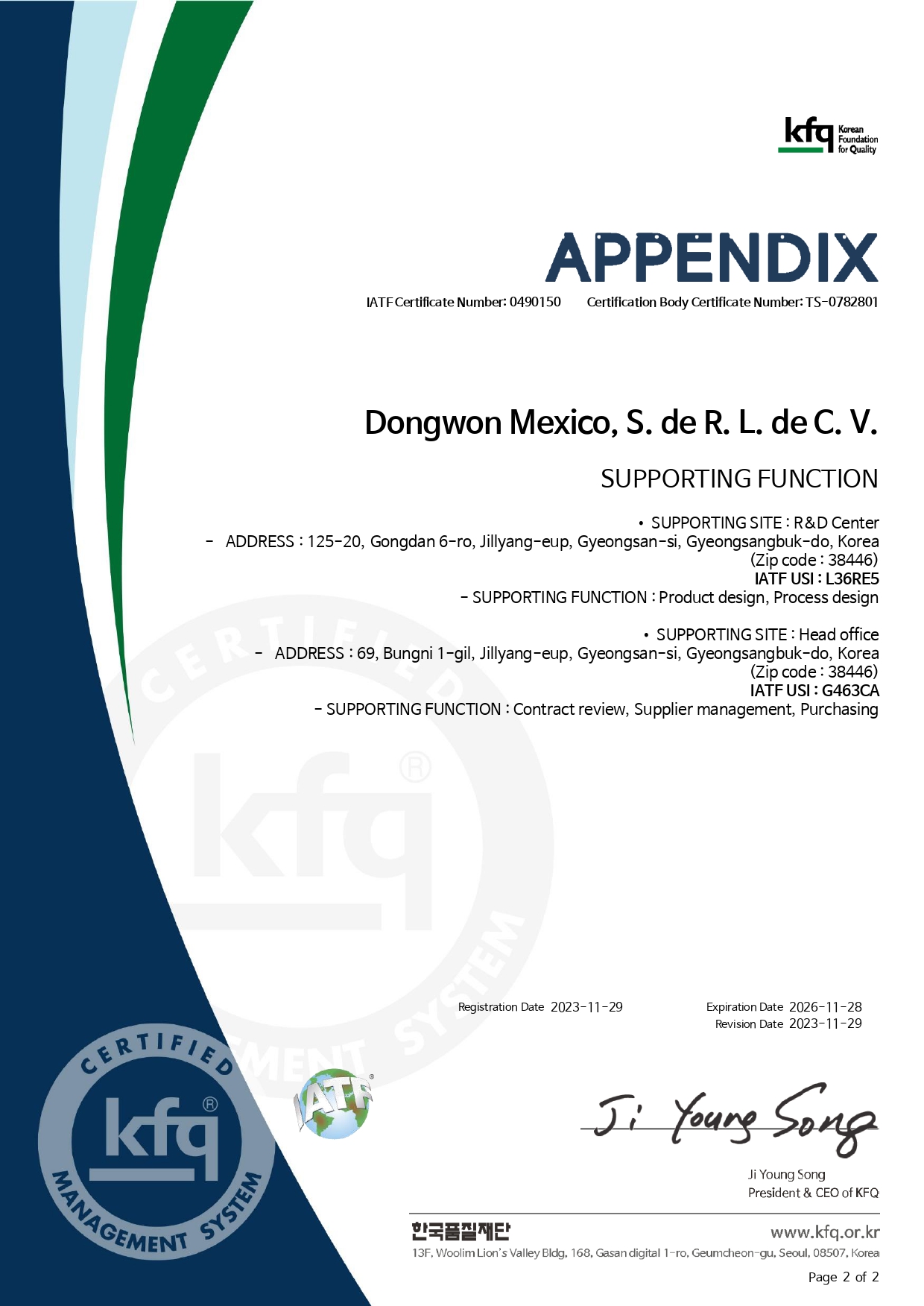 DW Mexico (DWMX) Quality (IATF16949) Certificate